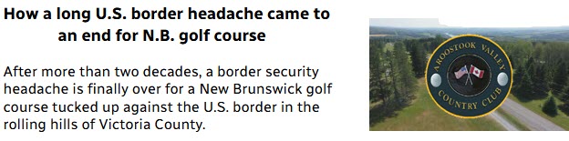 It is at Aroostook Valley Country Club where the Stars and Stripes and Maple Leaf fly side by side; where you can tee off on holes #1 (The International), #2 (The Grove) or #9 (Old Ironsides) and literally hit it "out of the country". It is where the US-Canada international boundary divides our 18-hole course between the State of Maine (USA) and the Province of New Brunswick (Canada). |